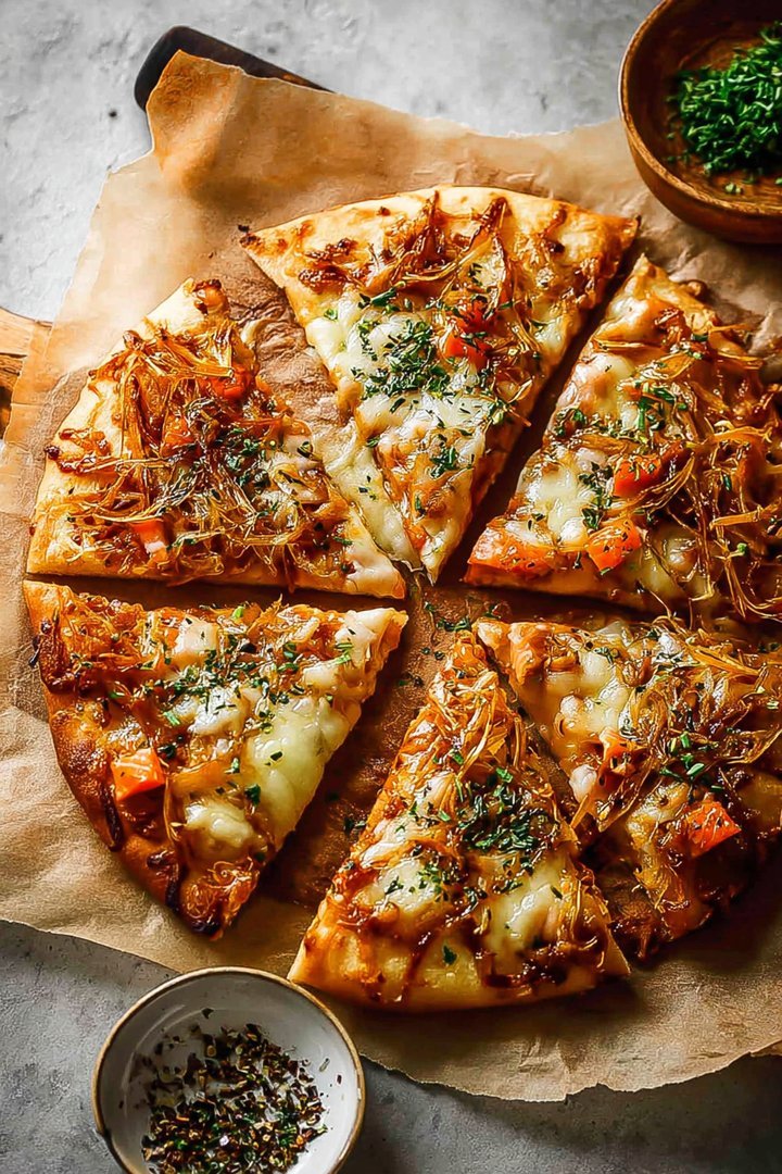 Imagine biting into a slice of warm, gooey pizza where the sweetness of pumpkin meets the smoky richness of Gouda. The crust is perfectly crisp, providing a delightful contrast to the creamy topping that just melts in your mouth.
