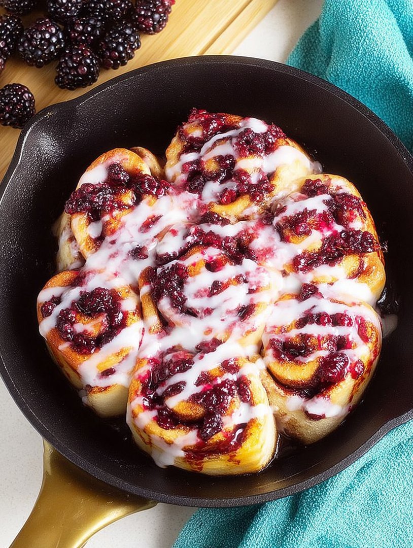 To achieve maximum gooiness and perfect texture, start by preparing the fruit mixture first, allowing the sugar to pull some moisture out of the blackberries. Roll the biscuits tightly, arrange them snugly in the skillet, and only apply the glaze when the rolls are warm but not scorching hot.