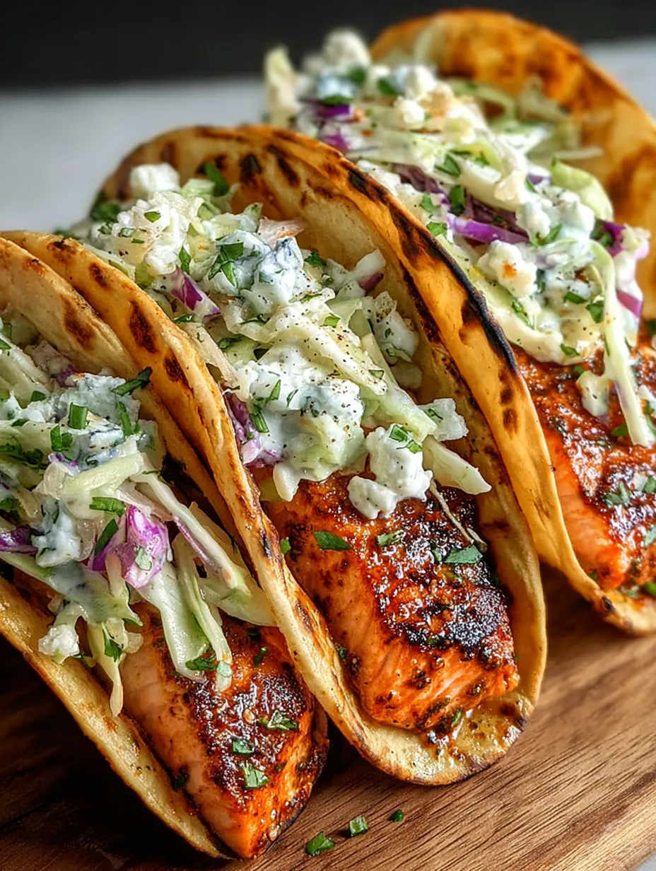 These tacos represent the ideal intersection of speed, flavor, and texture. They satisfy that craving for something fresh and zesty without requiring hours of culinary labor. The vibrant, creamy coleslaw pairs perfectly with the spicy, tender salmon, creating a balanced and exciting meal.