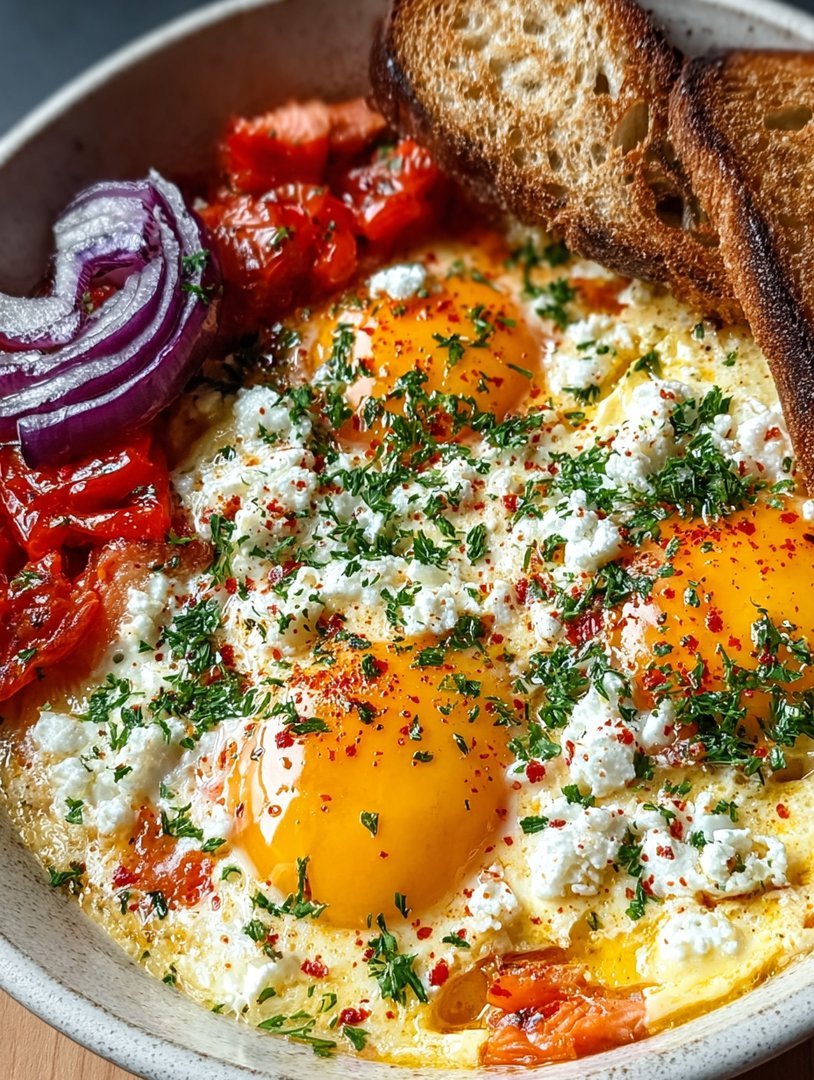 Forget the chaotic scramble for a moment. This recipe is less about cooking and more about assembly and immediate gratification. It involves melting salty, creamy feta cheese into a fragrant base of tomatoes and spices, then nestling delicate eggs right in the center before baking it all until sunny and perfect. It’s the kind of dish that looks incredibly impressive, tastes even better, and yet requires minimal washing up. A true culinary unicorn!