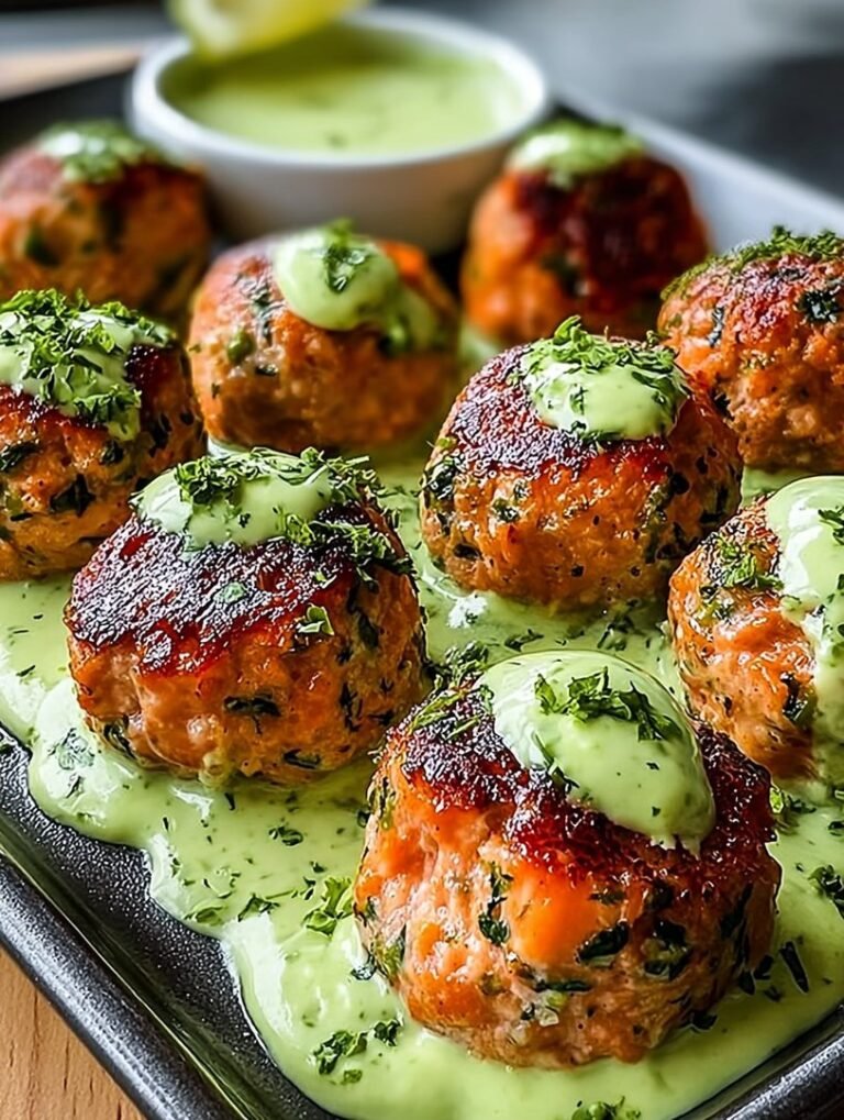- Step 5: Remove the baked salmon meatballs from the oven and allow them to rest for 2-3 minutes. Serve the warm meatballs immediately, drizzling generously with the Creamy Avocado Sauce or serving the sauce on the side for dipping.