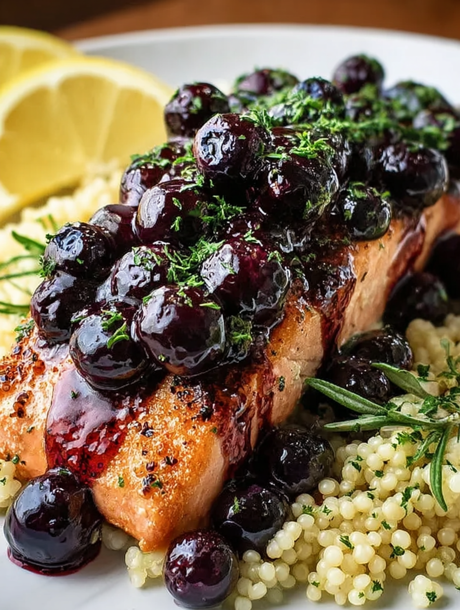 Let’s face it: we all have those nights where dinner planning involves staring blankly into the pantry, convinced that the only viable option is takeout. I know I do. This recipe, the magnificentBlueberry Glazed Salmon with Lemon Herb Couscous, was born from one such moment of culinary despair combined with an overwhelming desire to prove that I could, in fact, make something dazzling out of almost nothing. It was a chaotic Tuesday evening, the kind where you are convinced the refrigerator contains only air and maybe a sad, forgotten lime. I found salmon—a blessing!—and a pint of blueberries destined for a tragic, moldy end if not used immediately. Most people think salmon needs soy or teriyaki, but I wondered, what if fruit could be the star?