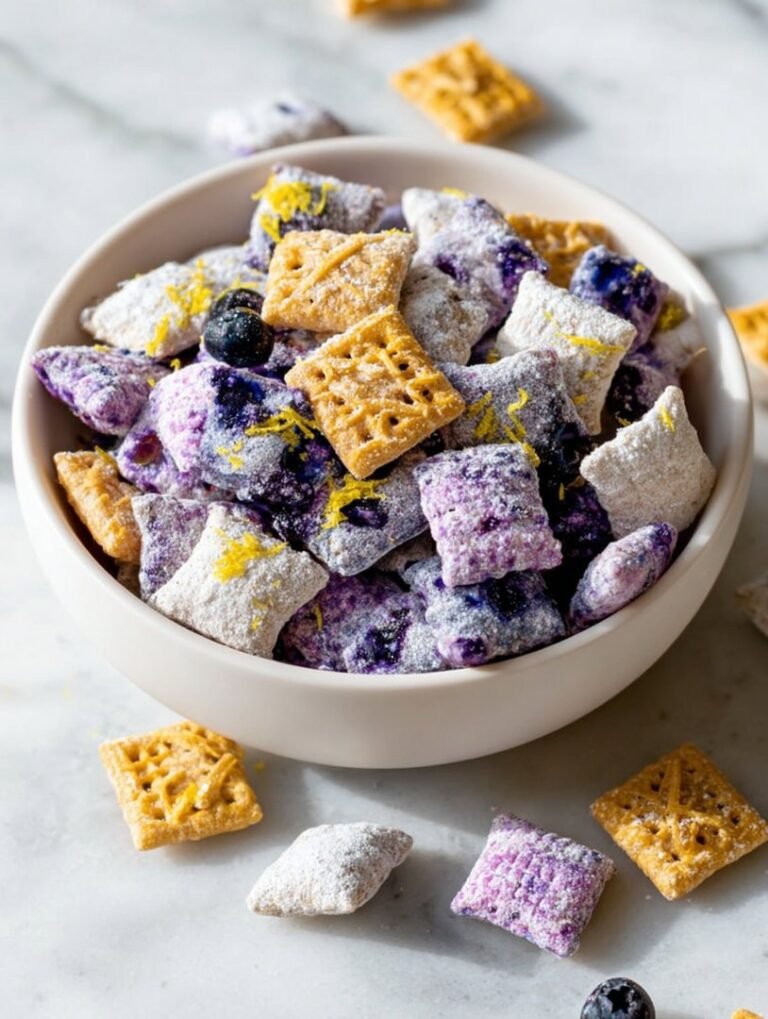 This isn’t your grandma’s chocolate-peanut butter classic. This is a bright, zesty, creamy, and undeniably addictive mixture. It captures the essence of a chilled cheesecake—the bright tartness of lemon, the burst of sweet blueberry, and the satisfying crunch of powdered sugar enveloping every morsel of crisp cereal. Prepare yourself for a snack that disappears faster than you can say “zesty dessert medley.”