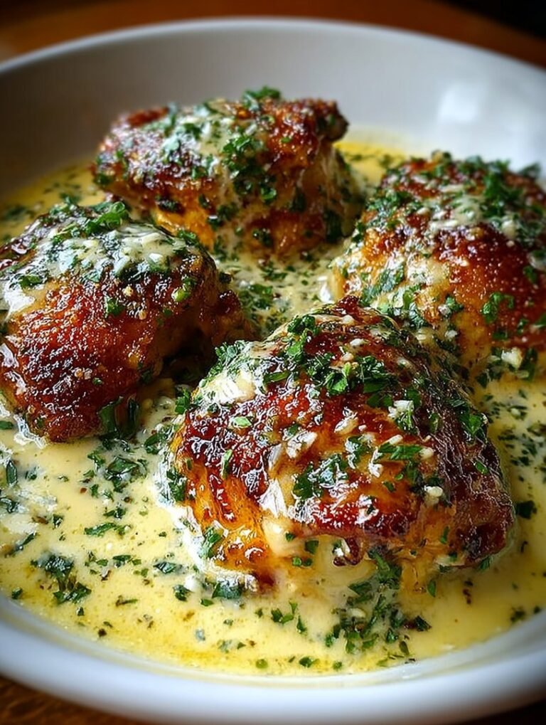 As you serve this dish, don’t be surprised if your guests start swooning over each bite. The aroma wafting through your kitchen will have them lining up for seconds. And let’s be honest: who can resist a plate of succulent chicken thighs drenched in rich, garlicky goodness? If you’re looking to impress without breaking a sweat, this recipe is your golden ticket.