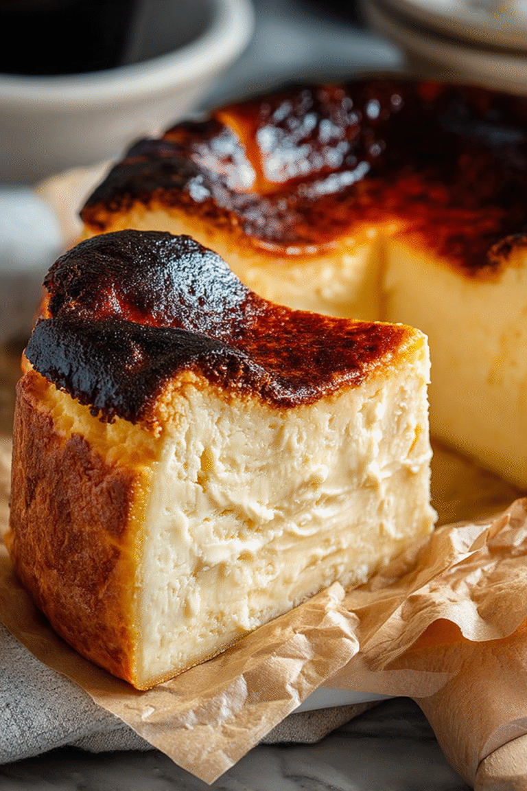 Delicious burnt basque cheesecake in a loaf pan that’s rustic, silky, and unexpectedly chic recipe with detailed instructions and nutritional information.