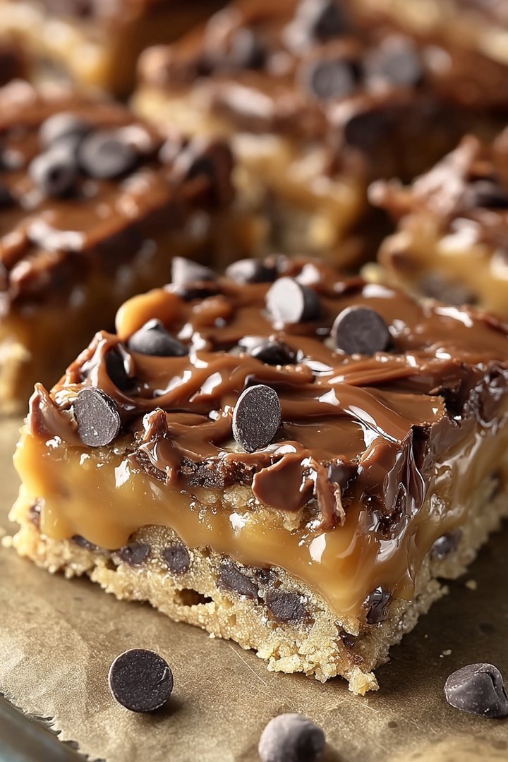 Caramel Chocolate Chip Cookie Bars are the ultimate treat, combining the comforting flavor of classic chocolate chip cookies with the gooey, decadent goodness of caramel. They’re easy to make, perfect for sharing (or not!), and guaranteed to satisfy any sweet tooth. Remember to use quality ingredients, don’t overbake them, and always let them cool completely before cutting for the best results. Enjoy these delightful bars with a glass of milk or a scoop of ice cream for a truly unforgettable dessert experience!