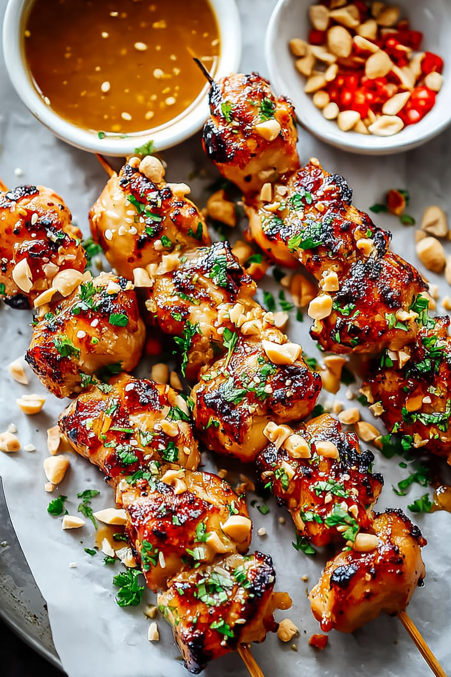 Easy Grilled Asian Chicken Skewers with Honey Garlic Sauce