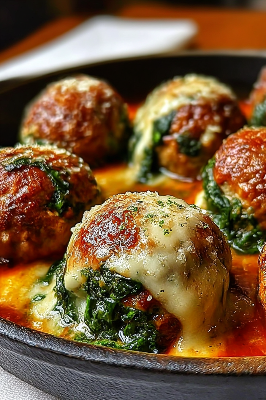 Spinach Garlic Meatballs Stuffed with Mozzarella