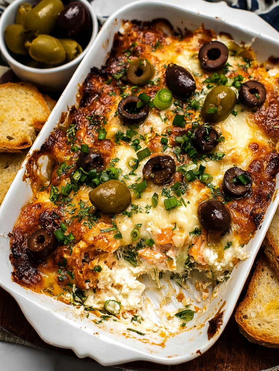 This recipe is the refined version of that desperate act—the organized, successful sibling of my initial panic dip. It proves that sometimes, the best recipes are born not from careful planning, but from sheer necessity and an abundance of salty, delicious olives. If you ever find yourself staring down a group of hungry people with only ten minutes to spare, remember the story of the frantic host and the glorious, gooey salvation of theCheesy Baked Olive Dip.