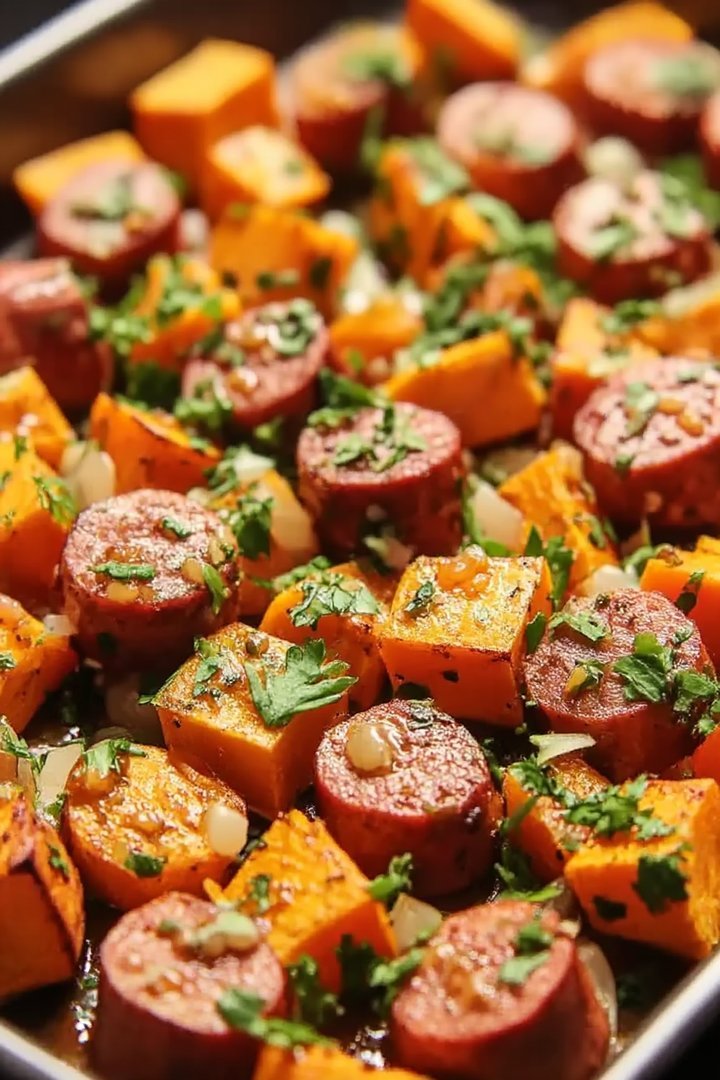 **Even Sizing: ** Cut the sweet potatoes and sausage into uniform sizes to ensure they cook evenly. Uneven pieces may result in some being undercooked while others are overcooked.