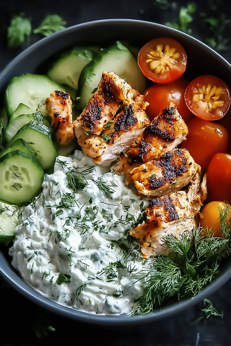 Store leftover Chicken Tzatziki Bowls in an airtight container in the refrigerator for up to 3 days. Reheat gently in the microwave or oven, avoiding overcooking which can dry out the chicken.