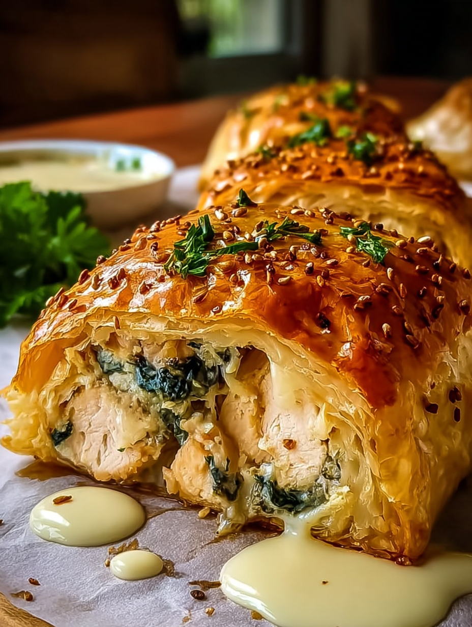 Just before baking, brush the entire surface generously with an egg wash (one egg beaten with a splash of water or milk). This gives the pastry that signature deep golden glow. Bake the parcels until the internal temperature of the chicken reaches 165°F (74°C) and the pastry is gorgeously puffed and deeply golden brown.