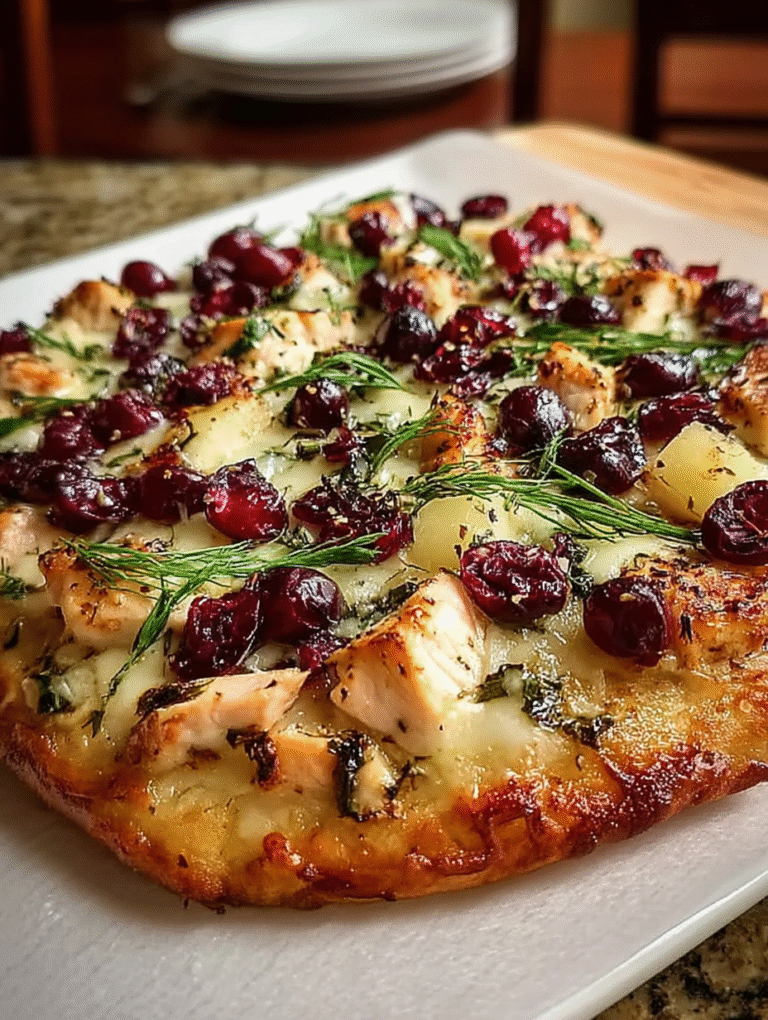 Yes, you can substitute dried cranberries for the sauce, though the flavor profile will be less tart and more chewy. If you use dried cranberries, make sure to use a slightly thicker base, such as a thin layer of ricotta cheese or cream cheese mixed with herbs, to ensure the pizza isn’t too dry.