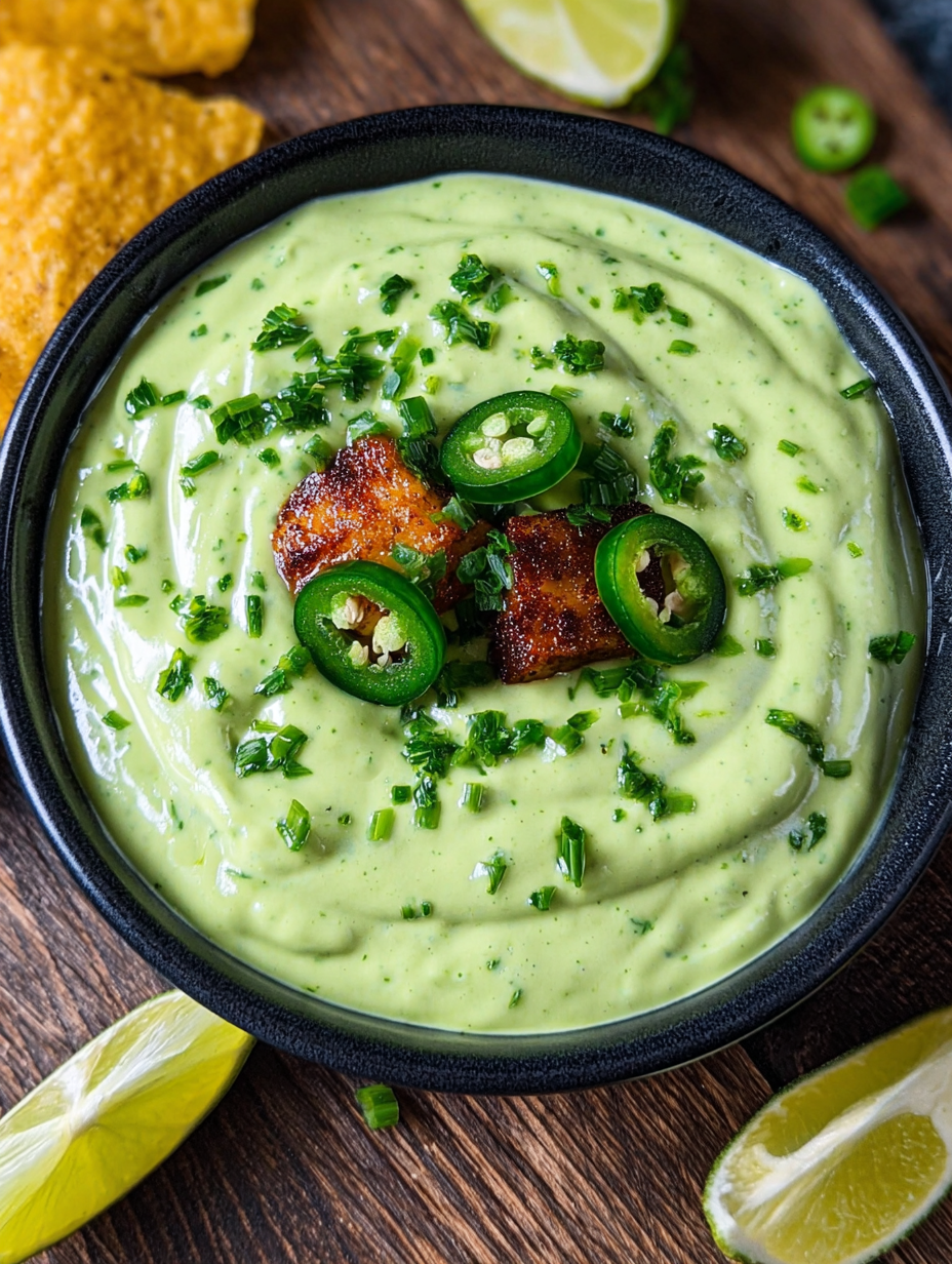 The key to perfect sauce is patience. Start by sautéing the fresh jalapenos and garlic in a little oil to mellow their heat. Once softened, blend them immediately with the cold dairy components and lime juice to achieve that flawless, silky smooth texture.