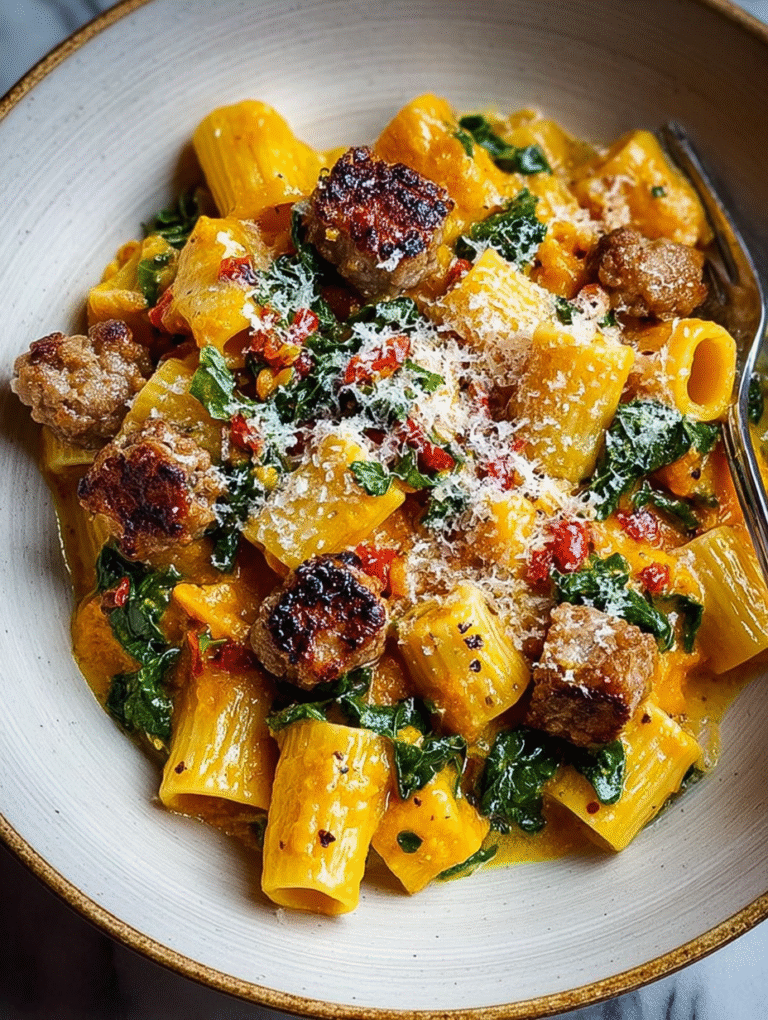 The air turns crisp and suddenly your kitchen demands comfort food that punches above its weight, like this incrediblecreamy rigatoni with butternut squash and spicy chicken sausage. This dish is the warm hug you desperately need after battling the grocery store on a Saturday afternoon, wrapping you in rich, velvety autumn flavors.