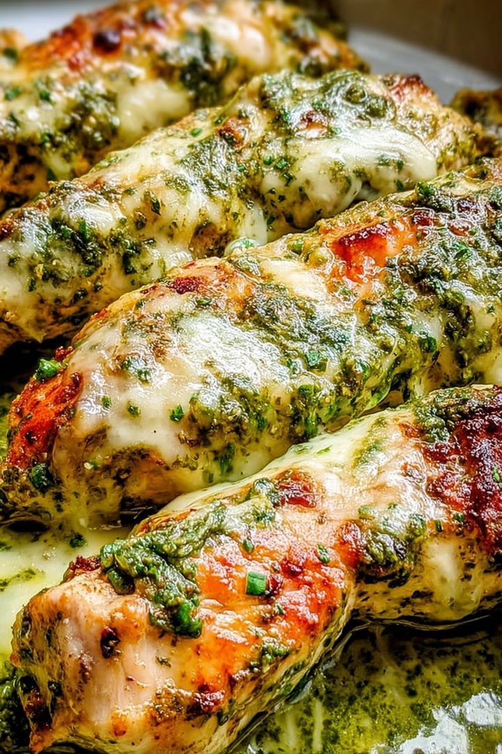 The vibrant pesto infuses the chicken with an explosion of fresh, herbaceous flavor that will tantalize your senses.