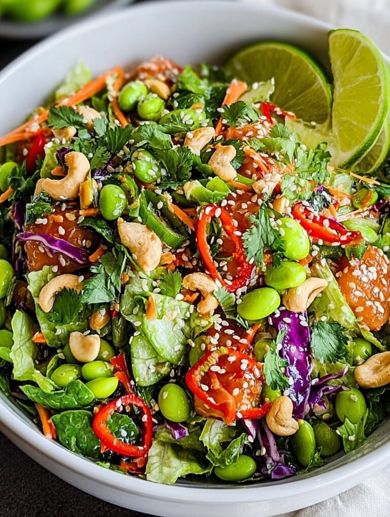 Say goodbye to boring, wilting greens and hello to a literal riot of color, texture, and flavor! The Edamame Crunch Salad with Sesame Cashew Lime decisively proves that vibrant, healthy eating never has to be dull or complicated. This powerhouse dish perfectly balances savory sesame notes, the bright lift of fresh lime, and the deeply satisfying crunch of cashews combined with crisp vegetables. It’s quick enough to whip up for a last-minute weeknight dinner and certainly impressive enough to bring along to your next celebratory gathering. Whether you choose to serve it layered alongside your favorite grilled protein or decide to enjoy it solo, this colorful, vibrant recipe promises a delicious and easy culinary escape. It’s truly a crunch-time superstar, making meal prep exciting and utterly addictive.