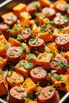 chicken sausage and sweet potatoes with honey garlic sauce