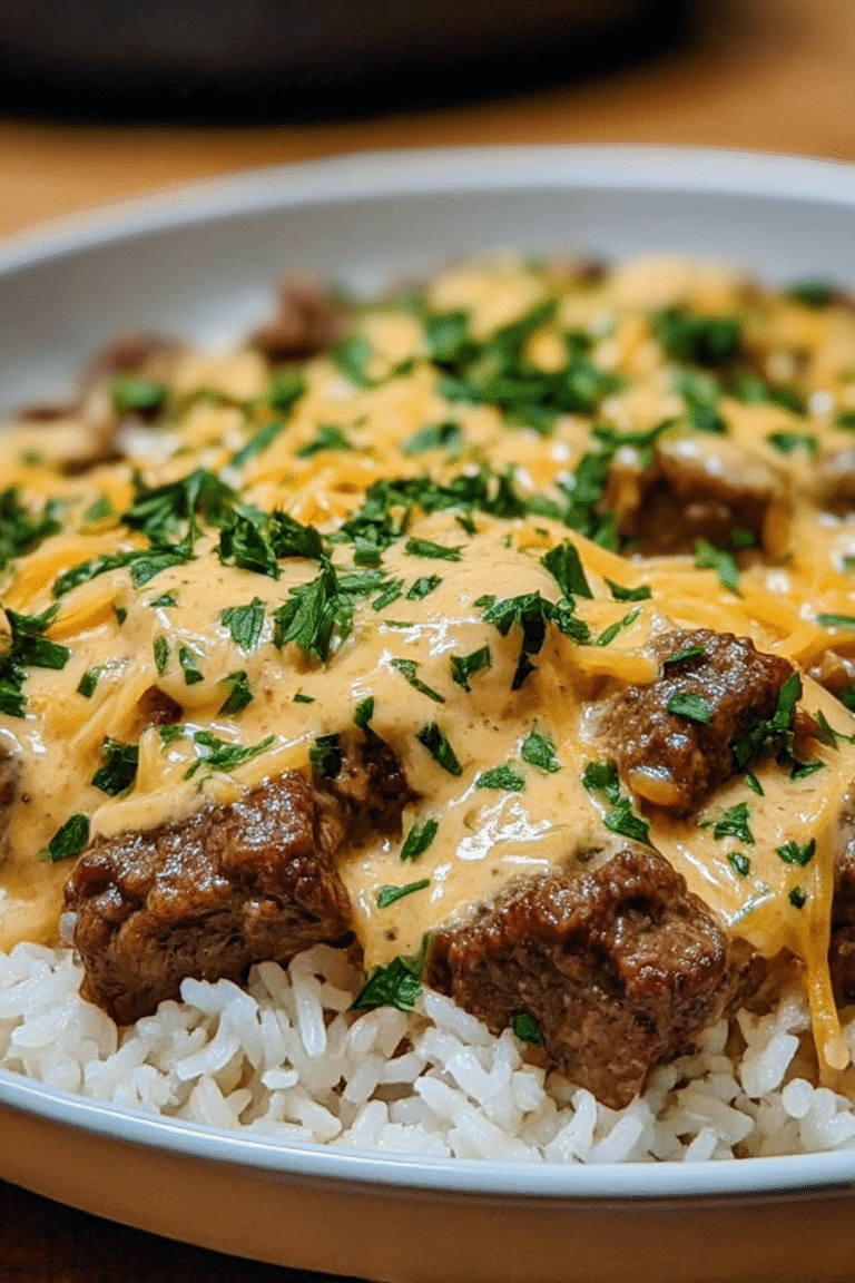 Imagine sinking your fork into a creamy, cheesy, and savory symphony, where tender beef mingles with fluffy rice and a luscious cheddar parmesan sauce. It’s the kind of dish that makes your taste buds sing and your belly happy, all in one delightful skillet.