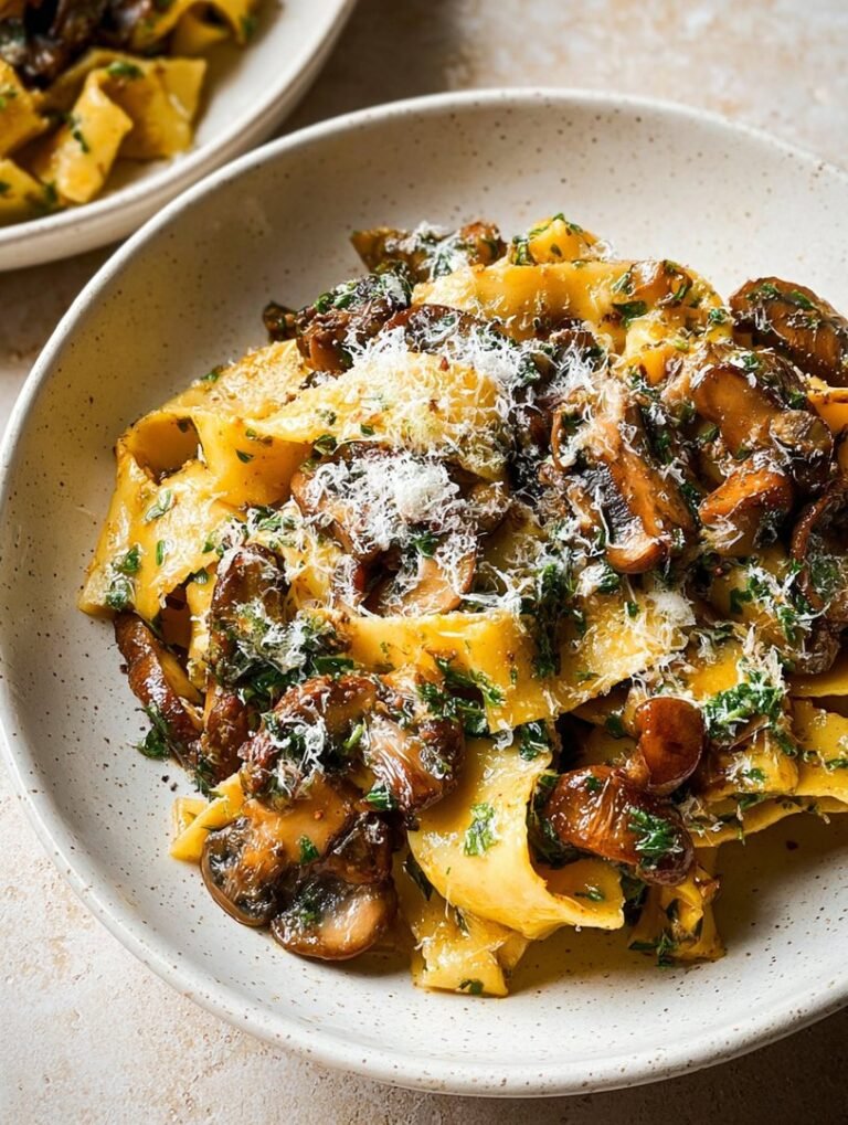 This pappardelle dish proves that true luxury lives in simplicity and perfectly balanced textures. Think of this recipe as the culinary equivalent of putting on your softest pajamas after a long day; it’s immediately comforting, utterly familiar, yet deeply satisfying. We are taking the rich, earthy depth of various fungi and pairing it with the irresistible allure of browned garlic and melted butter, creating a sauce that clings to those broad noodles like a toddler to a favorite security blanket. This isn’t just a pasta dish; it’s an experience.