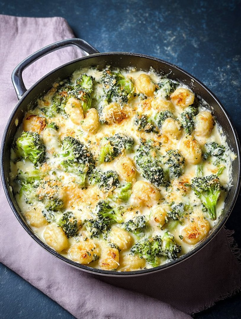 Discover the ultimate Gnocchi Bake! Pillowy potato gnocchi and tender broccoli in a rich, garlicky cream sauce, ready for the oven in minutes.