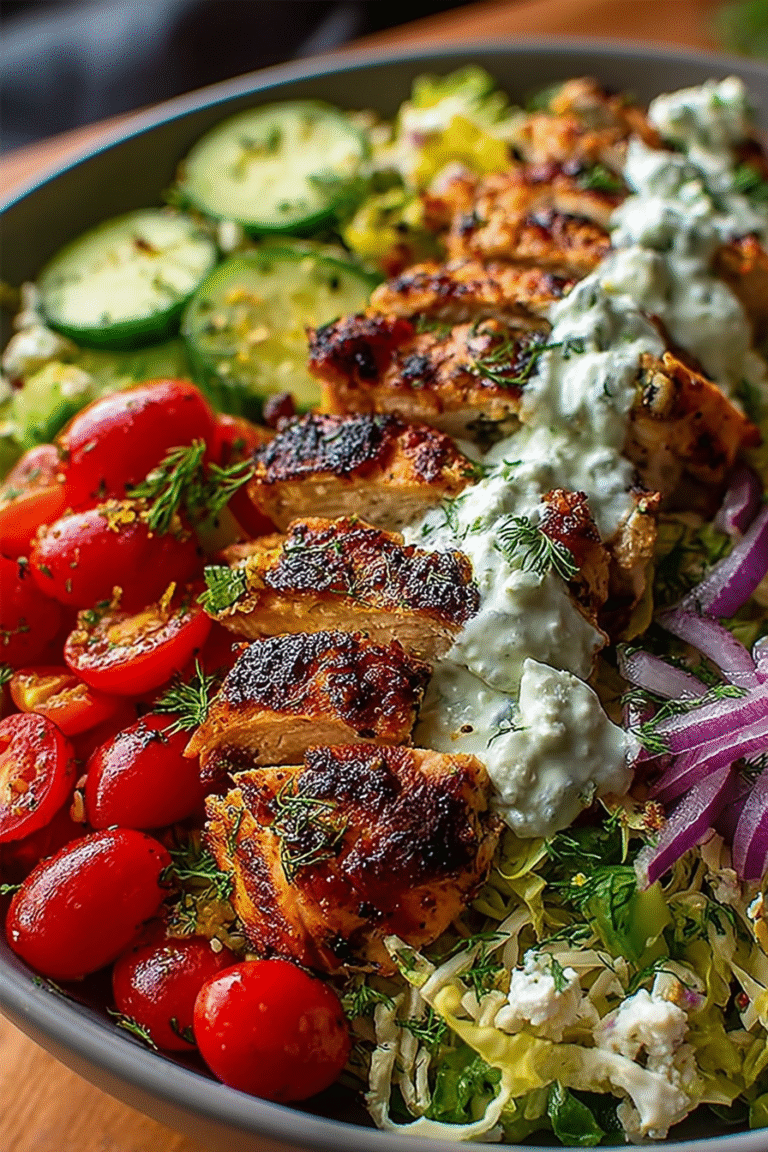 Imagine juicy, perfectly grilled chicken nestled among crisp cucumbers, ripe tomatoes, briny olives, and creamy feta, all brought together by a cool and tangy homemade tzatziki. This salad isn’t just food; it’s an experience, a celebration of fresh ingredients that’s as easy to make as it is delicious.