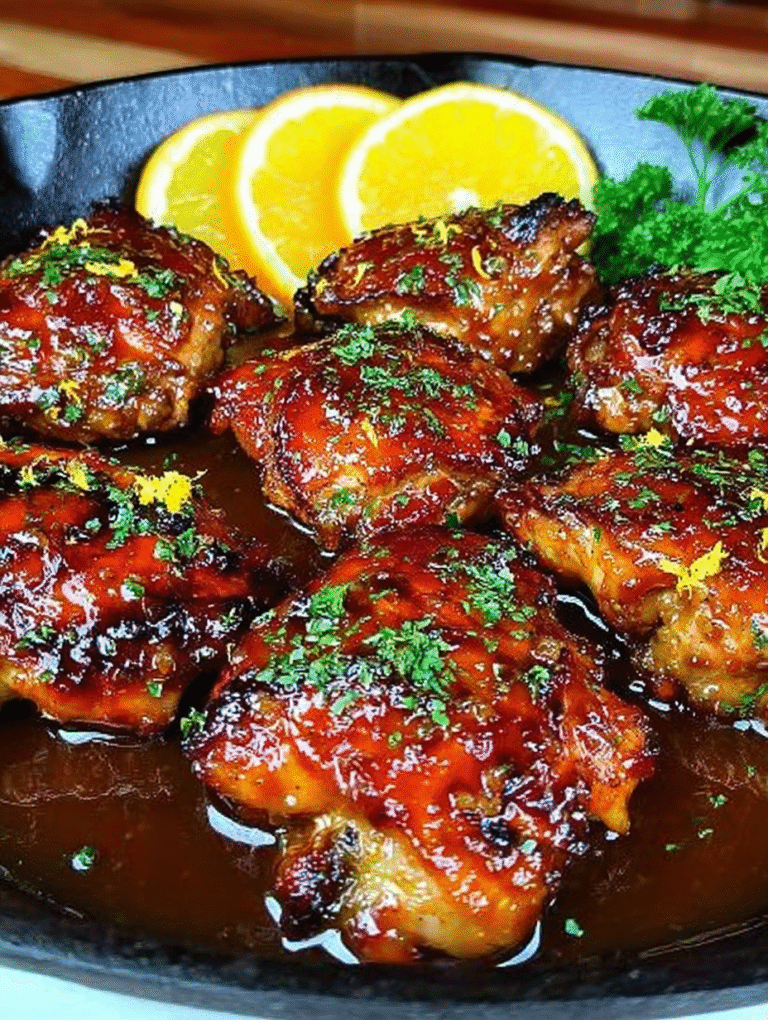 Absolutely! This Orange Honey Chicken recipe works beautifully indoors too, especially if the weather isn’t cooperating with your grilling plans. To bake, preheat your oven to 400°F (200°C). Place the chicken pieces on a lined baking sheet and bake for about 20 minutes, flipping once to ensure even cooking. Just like grilling, only apply the luscious glaze during the last 5-10 minutes of baking so the sugars caramelize without burning. If you prefer pan-frying, cook the chicken thighs over medium heat until nearly done, then reduce the heat to low and introduce the glaze, allowing it to caramelize gently into the meat for a delicious finish.