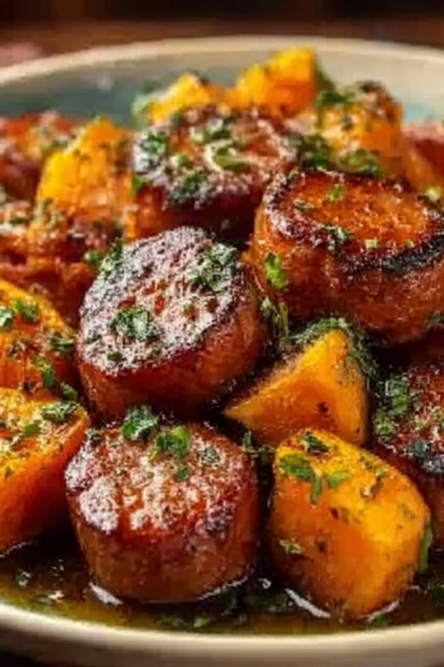 Oh, the sheer symphony of flavors when sweet potatoes embrace savory chicken sausage, all glistening under a honey garlic glaze! It’s a culinary hug that warms you from the inside out.