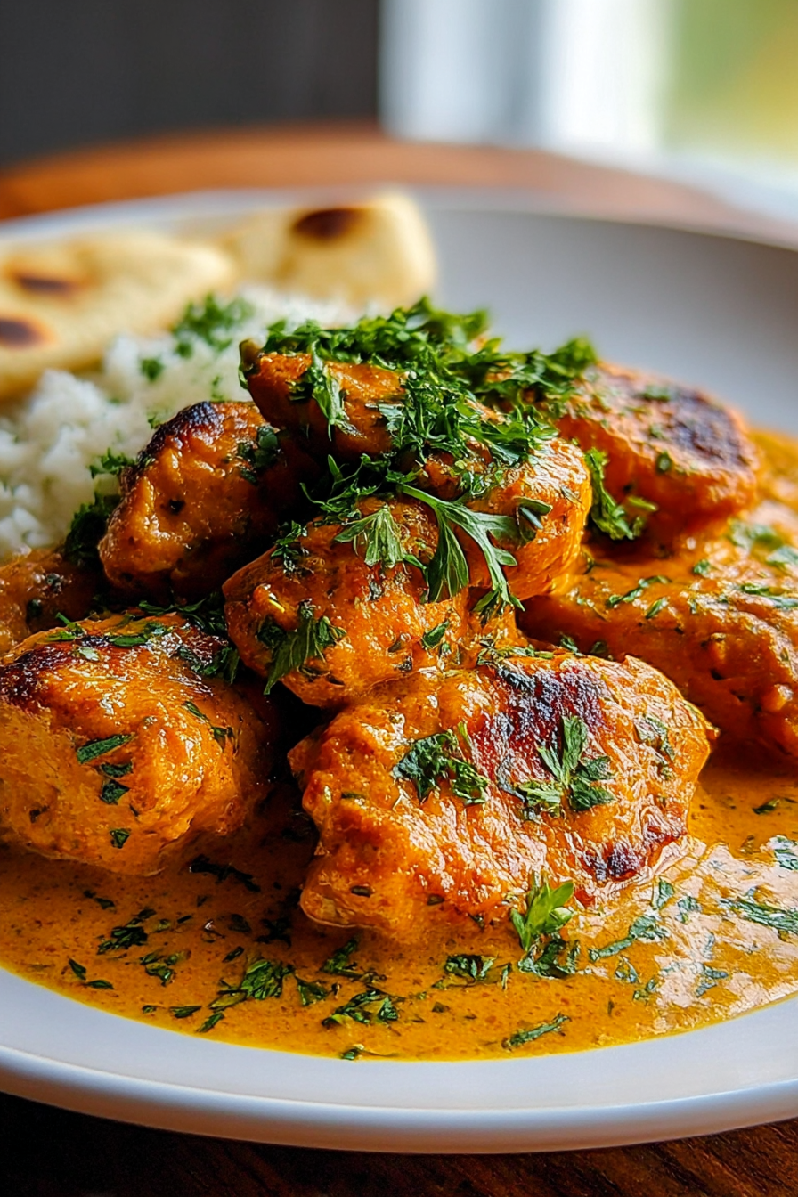 Garnish with fresh cilantro and serve hot with basmati rice, naan bread, or your favorite sides. This Indian Butter Chicken is the perfect dish for a cozy night in or a special occasion. Enjoy!
