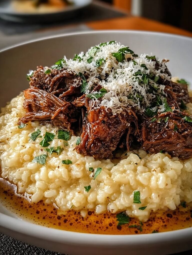 There are meals that simply nourish, and then there are meals that hug you from the inside out. This dish falls firmly into the latter category. It is the marriage of two culinary giants: the deep, savory intensity of an Italian-style pot roast, slow-braised until it surrenders into tender shreds, paired with the luxurious, creamy embrace of a perfectly cooked Parmesan risotto. Making this dish isn’t a quick sprint; it’s a glorious, aromatic marathon that transforms your kitchen into the most comforting place on Earth.