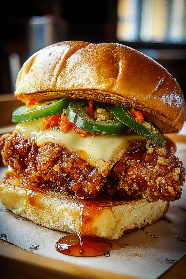 I was trying to recreate a mediocre diner sandwich, but accidentally poured fiery pepper sauce instead of maple syrup onto the breading station. The resulting flavor collision—sweet, sticky, and brutally hot—was a total revelation. This happy accident gave birth to the magnificent Jalapeno Honey Drenched Crispy Fried Chicken Sandwich.