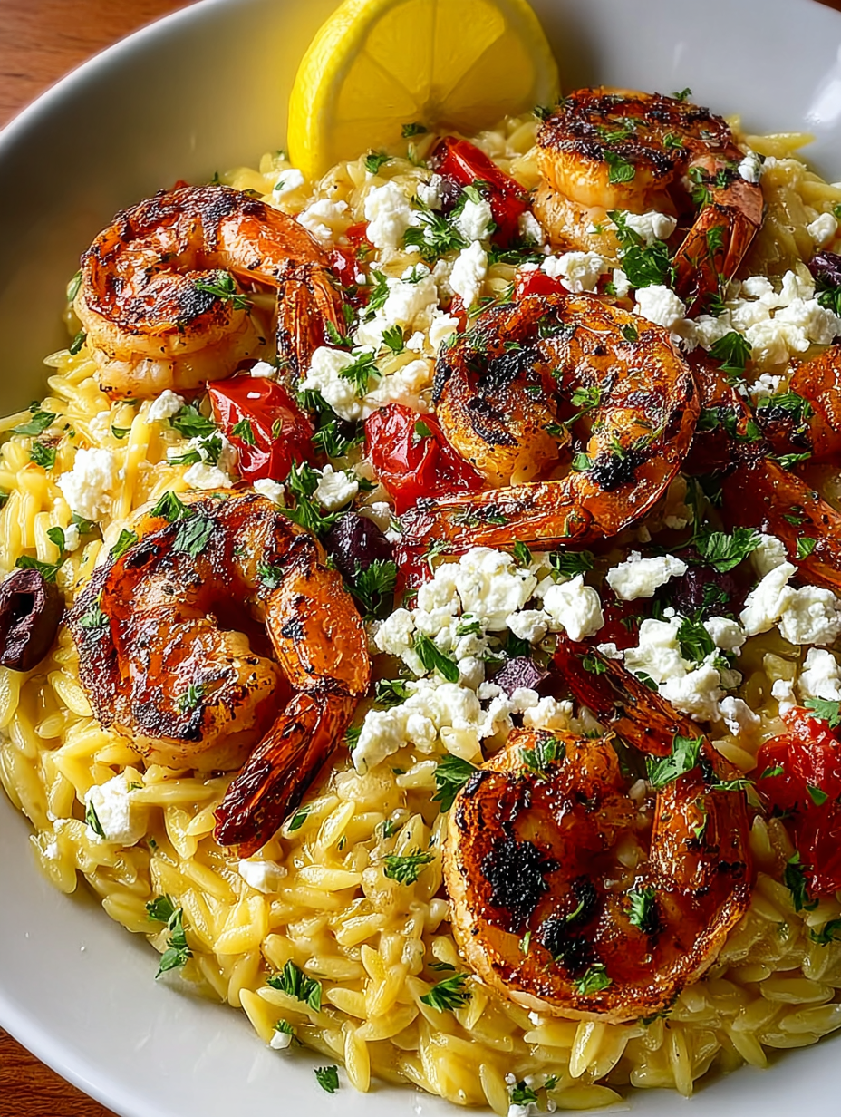 Lemon Feta Orzo Shrimp