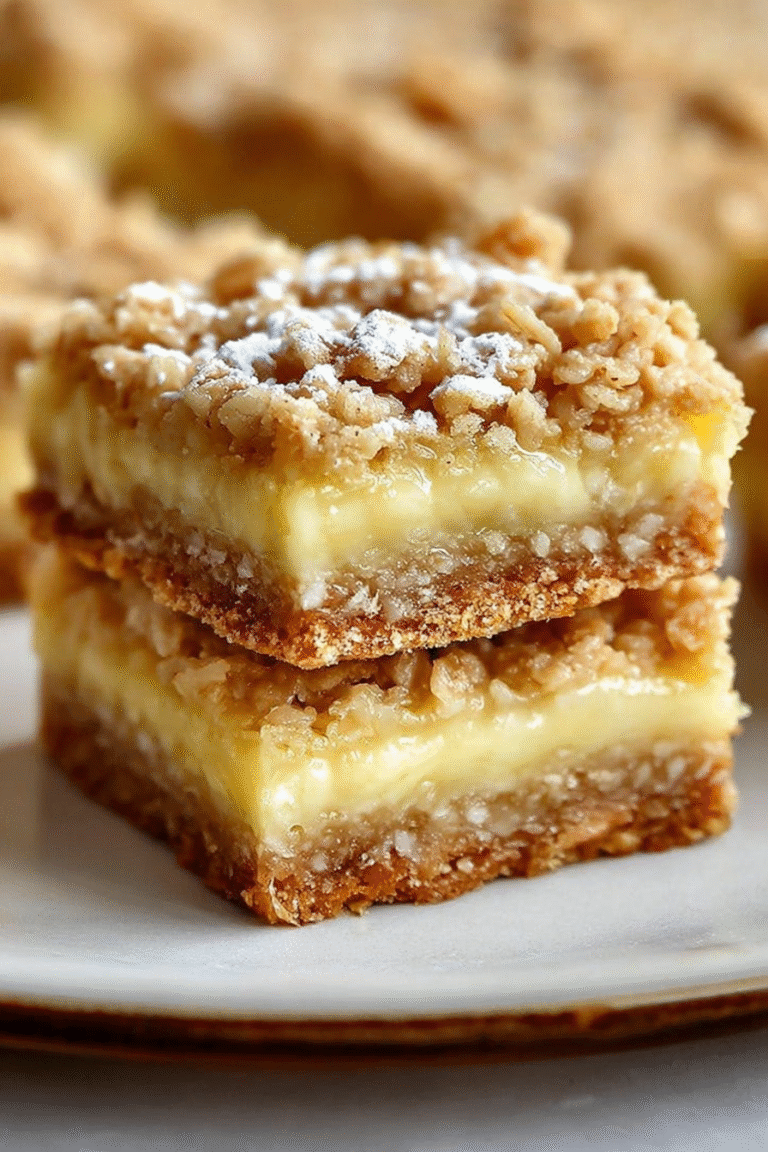 Let the bars cool completely in the pan before cutting them into squares. This helps them set properly and prevents them from crumbling. For cleaner cuts, refrigerate for an hour before slicing.