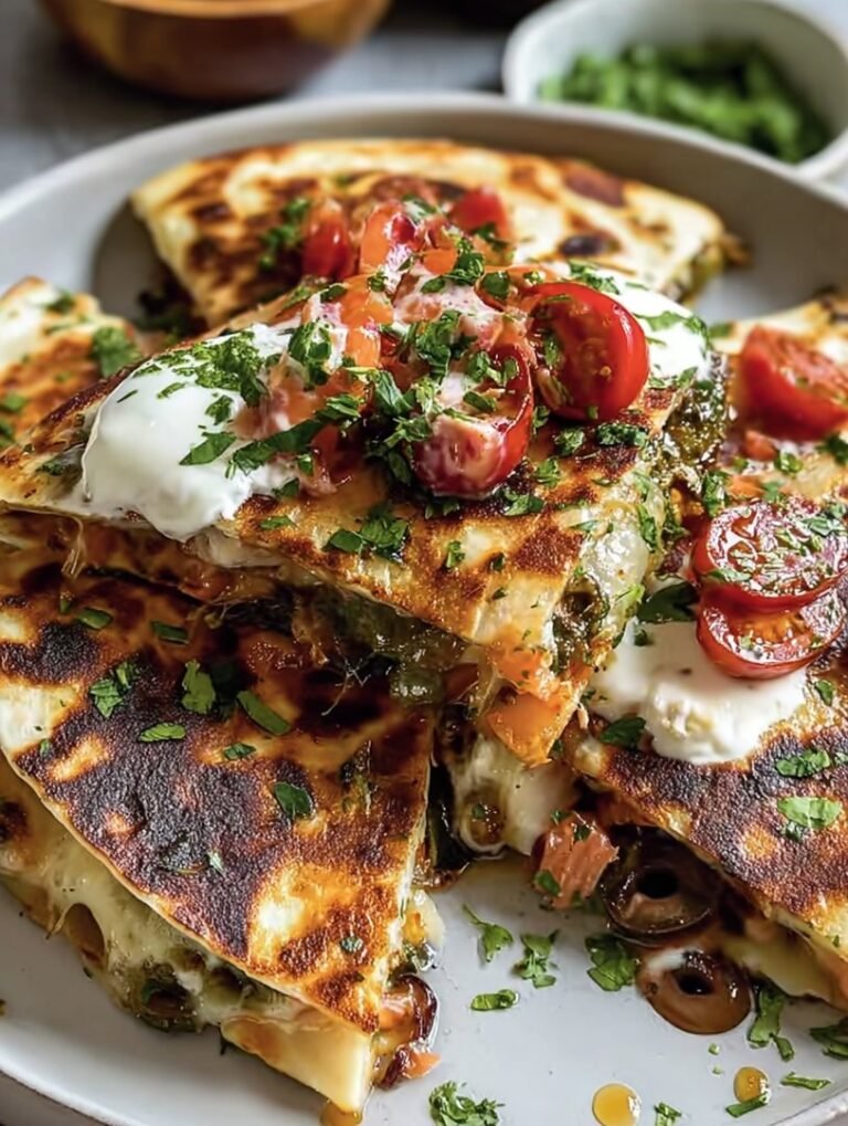 I needed a quick dinner, but my fridge was yelling “Greece!”—feta, olives, leftover chicken. Stuffing it all into a tortilla felt like culinary treason, yet one bite into that crispy, savory delight, and the Mediterranean Quesadillas were born. Pure, cheesy, sun-kissed genius.