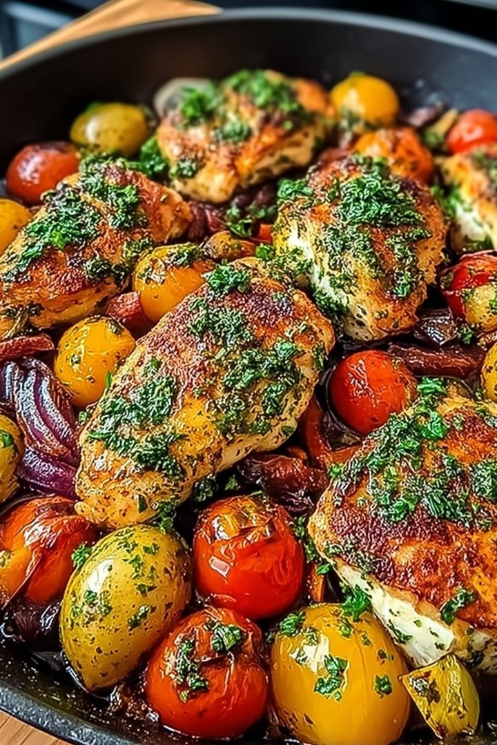 - Effortlessly combines tender chicken with vibrant Mediterranean vegetables, all in a single pan for minimal cleanup.