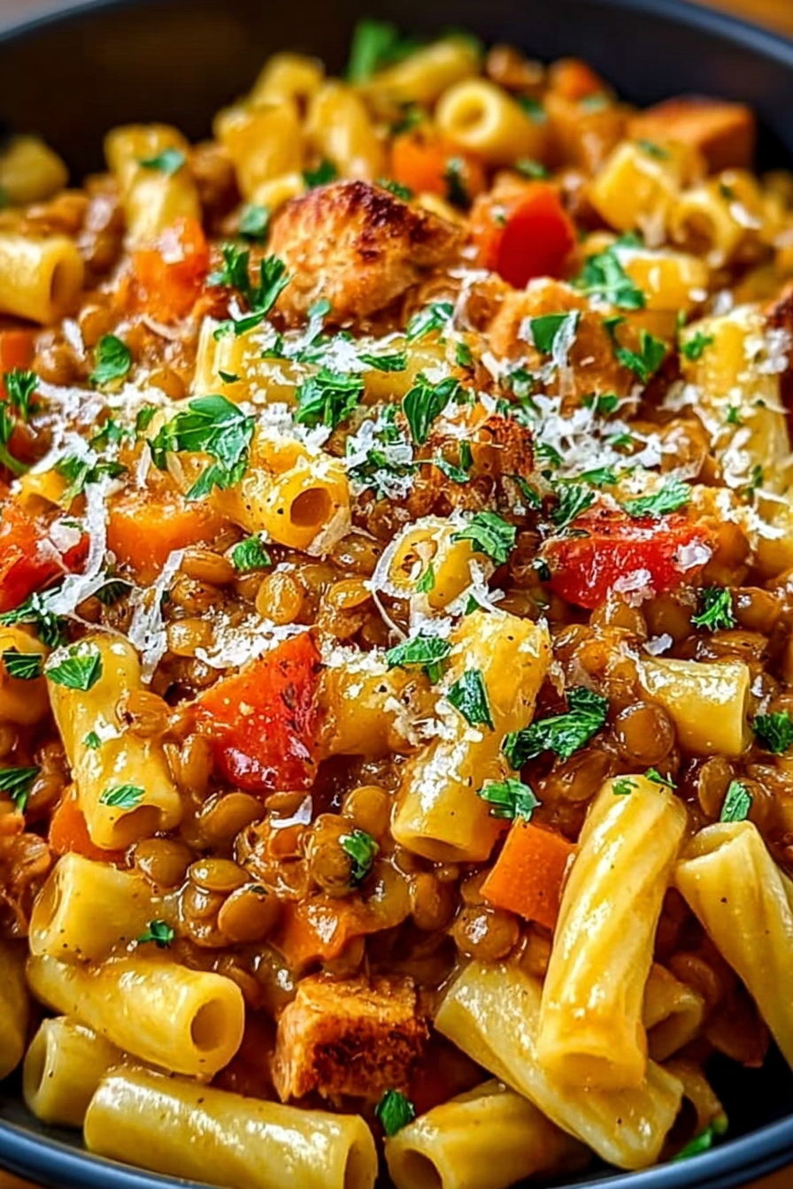 Feel free to make this one-pot pasta with lentils your own! Swap the chicken for ground turkey or lamb for a different flavor profile. For an extra kick, add a pinch of red pepper flakes or a dash of smoked paprika. Consider adding spinach or kale in the last few minutes.
