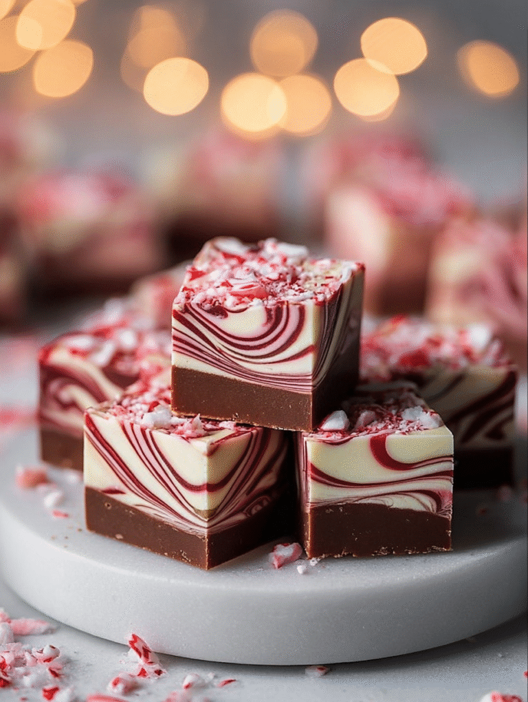 - Lemon Burst Fudge:Replace the peppermint extract with lemon extract and swap the red coloring for yellow. Top with candied lemon peel instead of candy canes for a bright, summery treat.