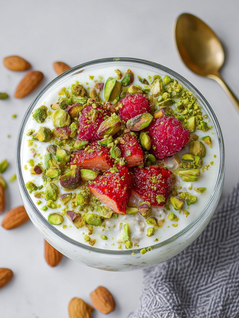 Swap out almond milk for coconut milk to add tropical notes, or use cashew butter instead of pistachio butter if you need a milder flavor. For an extra pop of color, incorporate dried cranberries or a swirl of bright lemon zest before sealing the jar overnight.