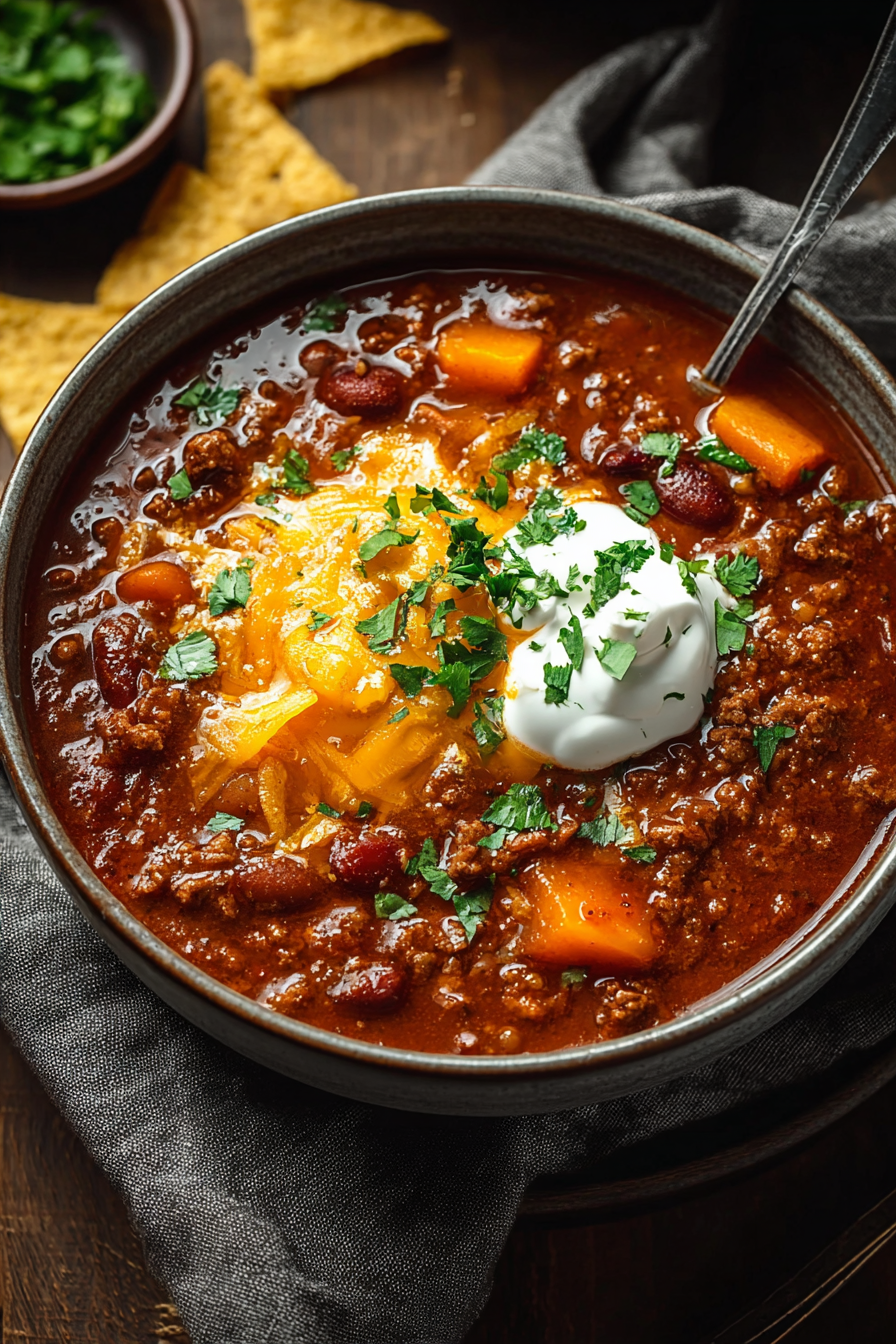 - **Sour Cream or Greek Yogurt:** Adds a tangy coolness that complements the warmth of the chili.