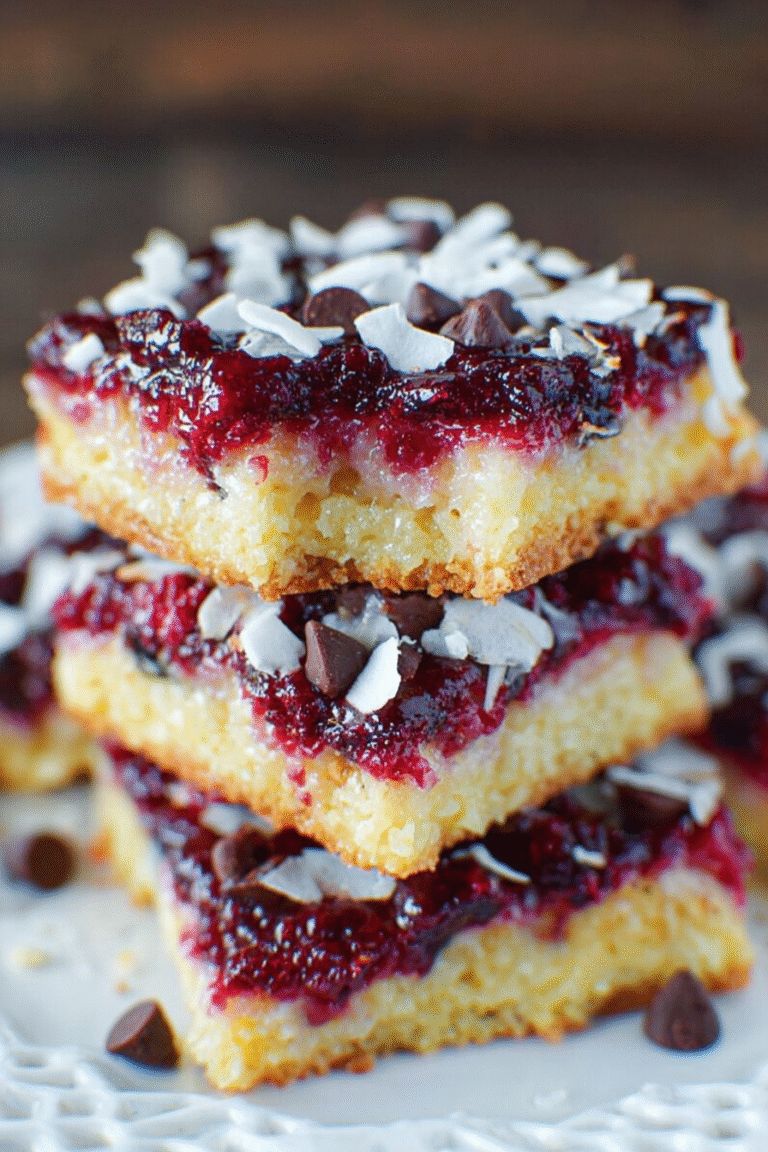 These Raspberry Coconut Magic Bars are an absolute dream, combining a buttery base, sweet coconut, and bursts of raspberry delight. Easy to make and endlessly adaptable, they’re perfect for any occasion, whether it’s a casual gathering or a sweet treat for yourself. Remember to experiment with different berries and keep those bars chilled for clean cuts. Now go forth and create some magic in your kitchen!