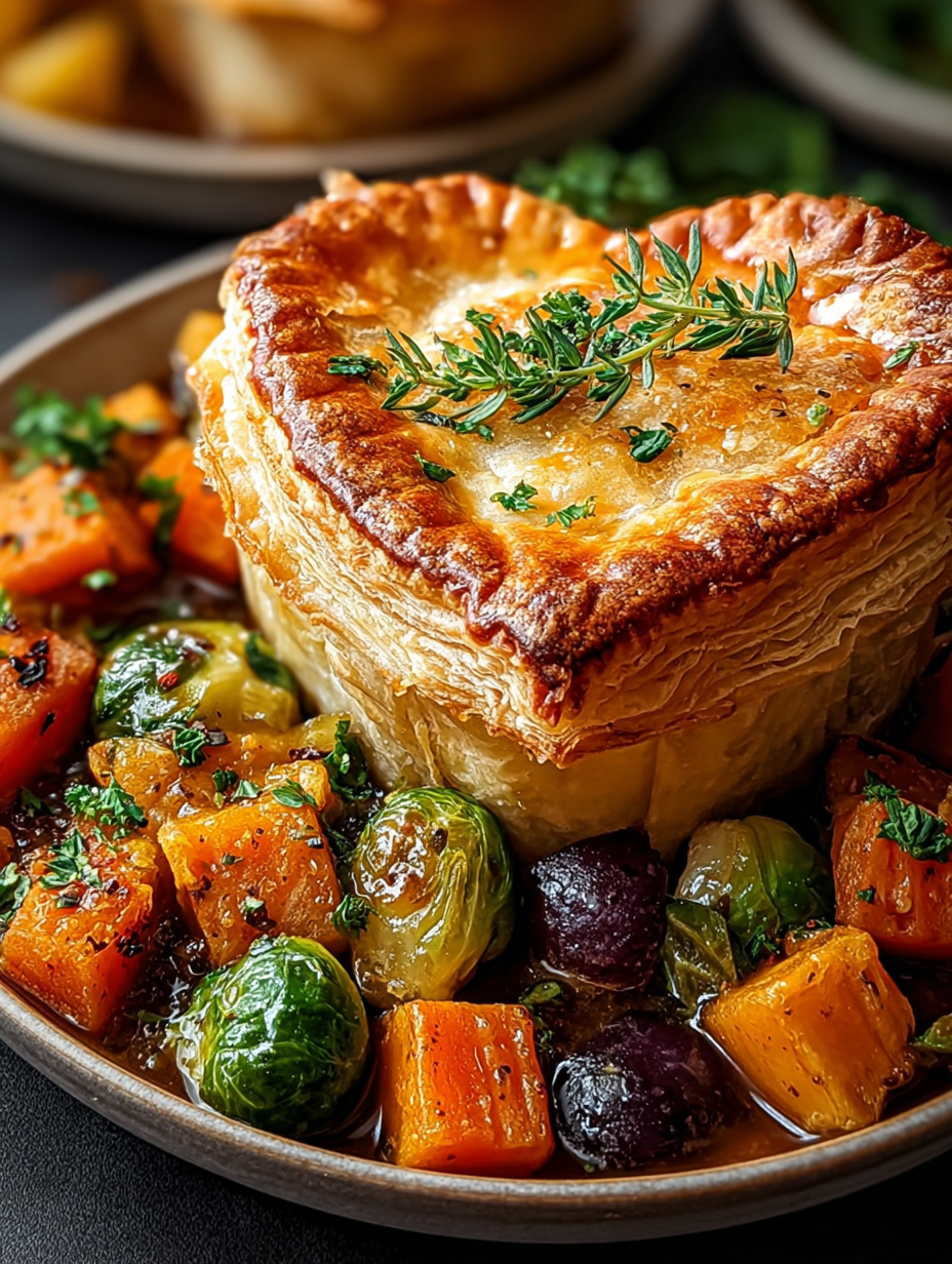 Embrace fall comfort! These pot pies feature deeply caramelized carrots, squash, and parsnips, folded into a rich thyme gravy and crowned with flaky pastry. Roasting adds incredible depth.