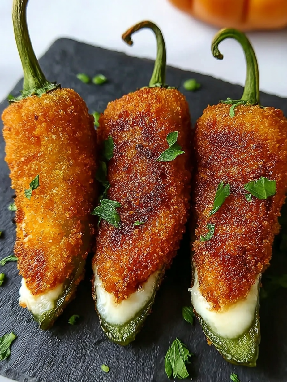 - The golden, crispy coating beautifully contrasts with the vibrant green pepper and oozing cheese, making these an irresistibly beautiful platter centerpiece.