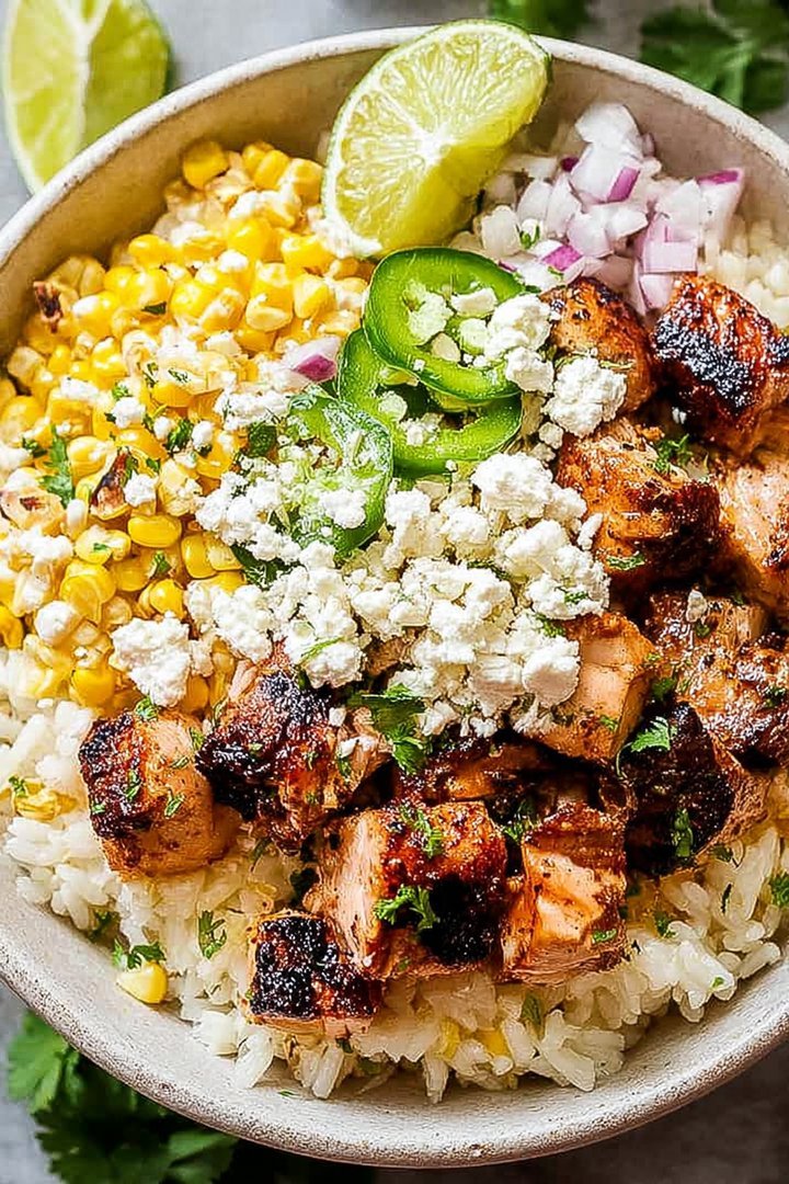 Oh, the possibilities are endless! For a spicier kick, add a pinch of cayenne pepper to the chicken marinade or mix some sriracha into the mayo. If you’re feeling adventurous, try grilling the corn on the cob before cutting off the kernels for a smokier flavor. You could also swap the rice for quinoa or cauliflower rice for a lighter option. Don’t forget to experiment with different toppings like crumbled cotija cheese (if you eat dairy), pickled onions, or even a drizzle of lime juice for extra zing. The sky’s the limit!