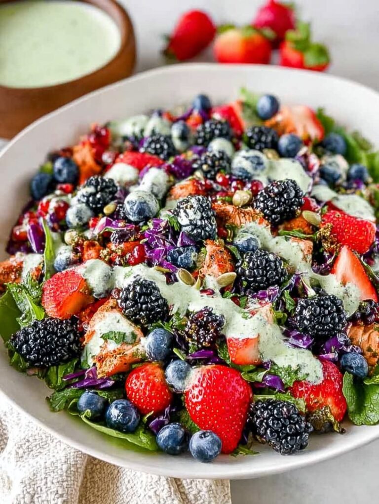 This salad isn’t just fuel; it’s a celebration of textures and flavors. You get the crunch from toasted pecans, the sweetness from summer berries, the bite from arugula, and the grand finale—a dressing so creamy and tangy it coats every leaf in sunshine. Trust me, once you master this recipe, the dreary lunch rut will become a distant, embarrassing memory.