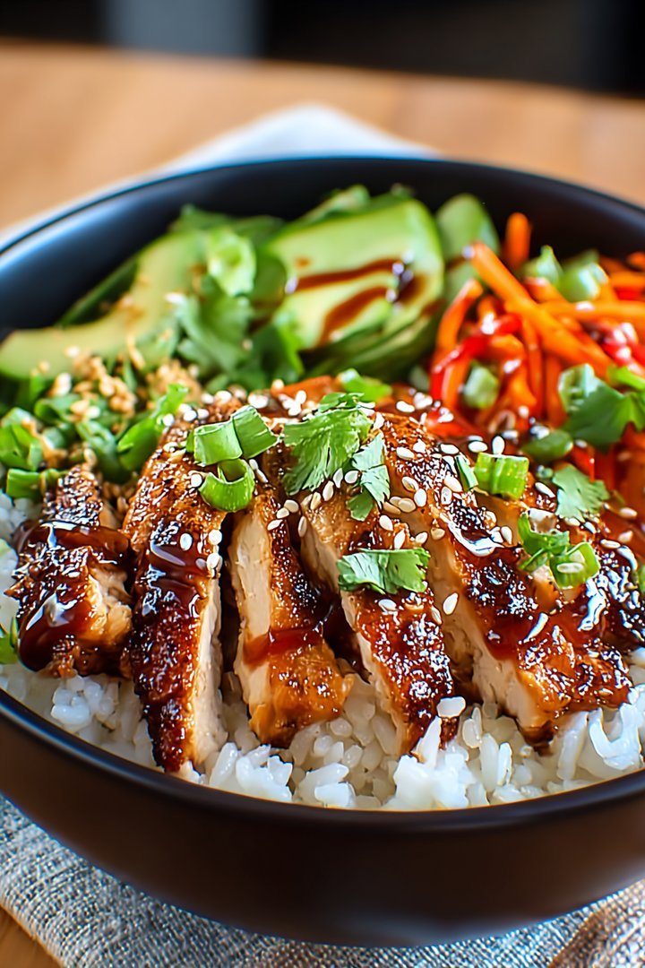 Delicious teriyaki chicken bowl recipe with detailed instructions and nutritional information.