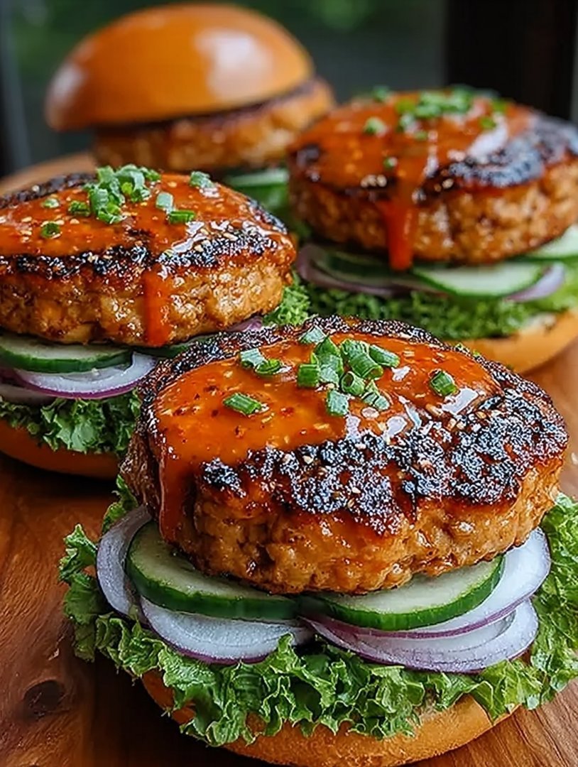 Skillet Method:Heat a heavy-bottomed skillet (cast iron works beautifully) over medium-high heat. Sear the patties for about 3 to 4 minutes per side until they develop a deep brown crust. Once both sides are seared, reduce the heat to medium-low and continue cooking for another 5 to 7 minutes until the internal temperature reaches 165°F (74°C). In the last two minutes of cooking, brush the remaining reserved sweet chili sauce generously over the top of the patties, allowing it to caramelize slightly.