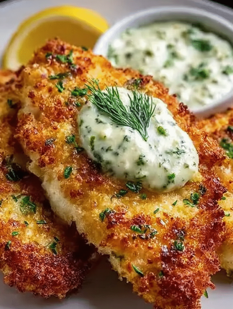 - The Crunchy Crust:1 cup Panko breadcrumbs, 1/2 cup finely crushed plain crackers (like Ritz or Saltines), 1/2 cup grated Parmesan cheese, 2 tablespoons dried dill weed, 1 teaspoon garlic powder.