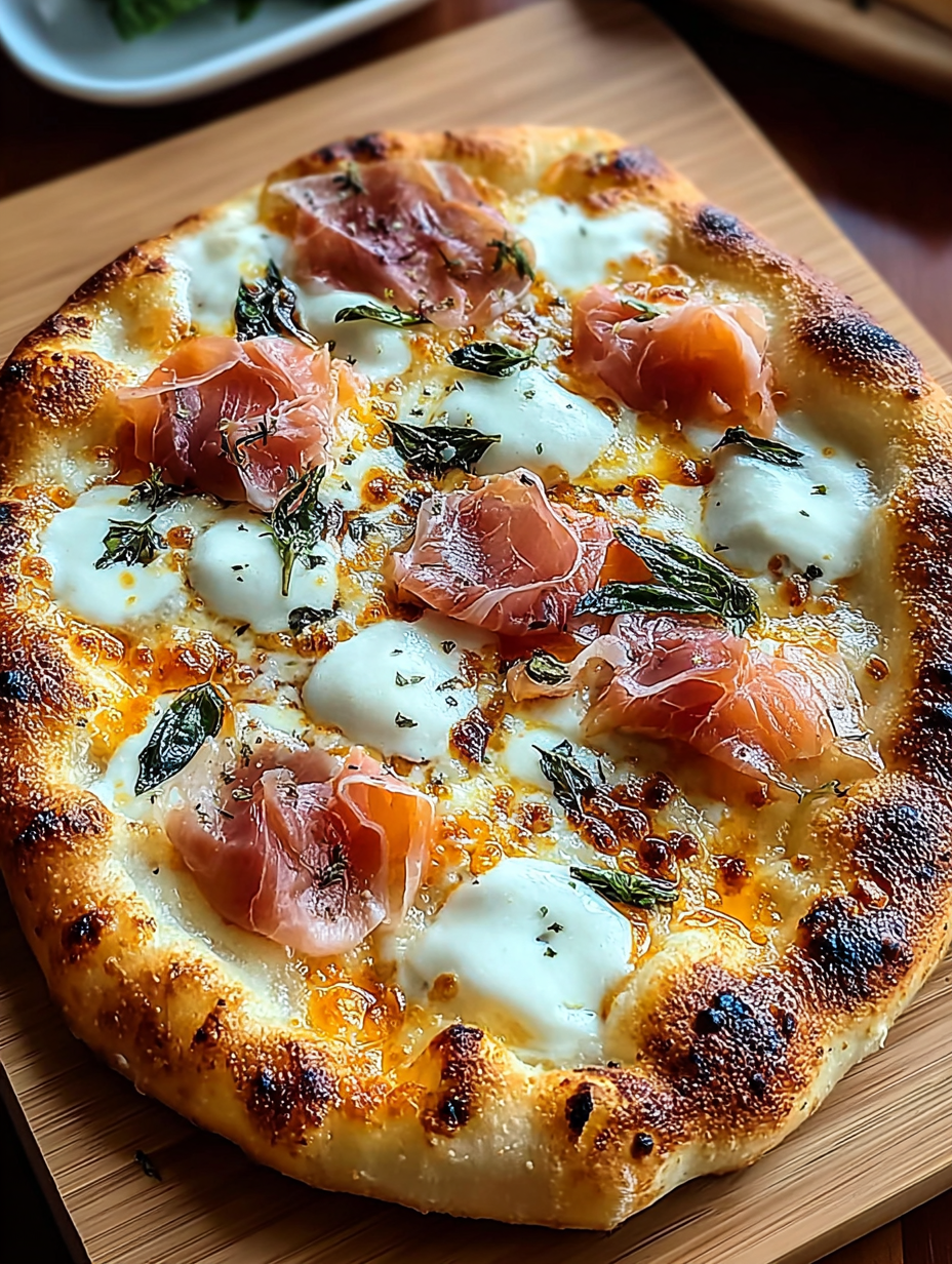 I once accidentally swapped out my usual tomato base for a ricotta smear because I forgot to buy marinara. Paired with leftover roasted chicken and a craving for something salty, the result was this stunning, creamy White pizza with chicken turkey prosciutto—pure sunshine disguised as dinner.