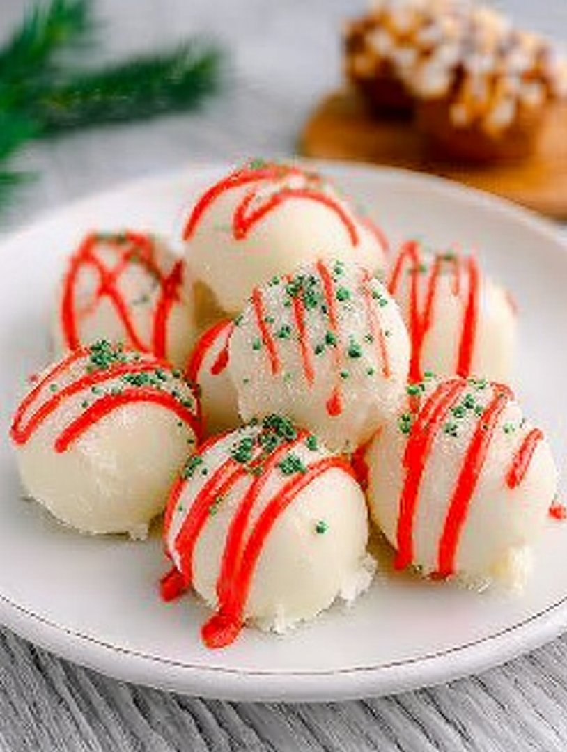 - Step 5: Remove the chilled truffles from the freezer. Dip each ball entirely into the green chocolate coating, allowing excess to drip off. Immediately place on the parchment paper and decorate generously with holiday sprinkles before the coating sets.